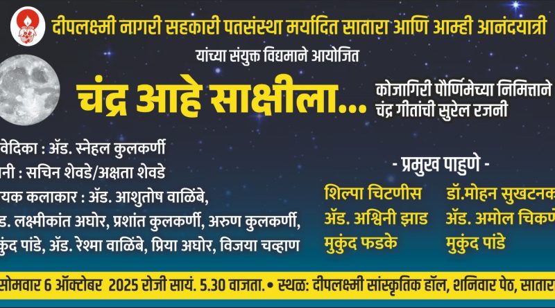 सोमवारी साताऱ्यात चंद्र आहे साक्षीला गाण्यांचा कार्यक्रम