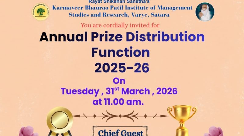 कर्मवीर भाऊराव पाटील इन्स्टिट्यूट ऑफ मॅनेजमेंट स्टडीज अँड रिसर्चचा बक्षीस वितरण समारंभ सातारा रयत शिक्षण संस्थेच्या कर्मवीर भाऊराव पाटील इन्स्टिट्यूट