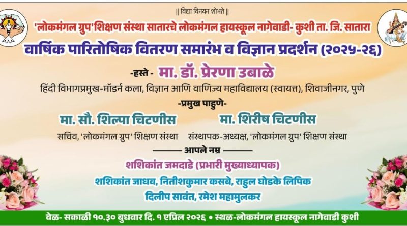 सातारा येथील लोकमंगल ग्रुप शिक्षण संस्थेच्या लोकमंगल हायस्कूल नागेवाडी कुशी या शाळेचा वार्षिक पारितोषिक वितरण समारंभ आणि विज्ञान प्रदर्शन बुधवार