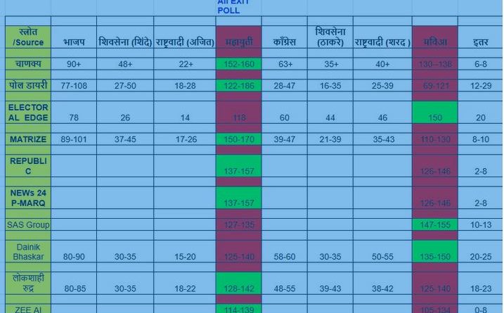 Read more10 पैकी 3 संस्थांचा महाविकास आघाडीला कौल मुंबई राज्यातील विधानसभा निवडणुकांसाठीच्या मतदानानंतर समोर आलेल्या एक्झिट पोलमधून महायुतीला बहुमताचा आकडा गाठता