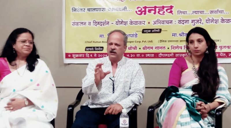 रंगायन आर्ट्स प्रस्तुत अनहद या कार्यक्रमांतर्गत डॉ. निर्मोही फडके यांनी लिहिलेल्या विविध लेखांचे संकलन व दिग्दर्शन करून योगेश केळकर यांनी संवाद रूपात अभिवाचनाच्या माध्यमातून हे लेखन वाचकांसमोर सादर केले. वंदना गुजरे यांच्यासमवेत झालेल्या या अभिवाचनाच्या आगळ्यावेगळ्या कार्यक्रमामुळे उपस्थित रसिक श्रोते मंत्रमुग्ध झाले.