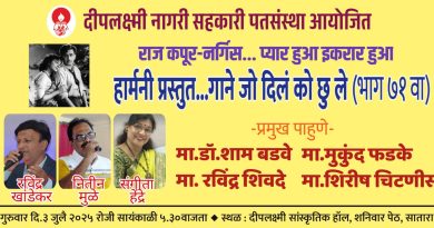 येथील दीपलक्ष्मी नागरी सहकारी पतसंस्थेतर्फे आयोजित आणि गोल्डन इरा म्युझिकल ग्रुप सातारा प्रस्तुत ‘मेरी आवाजही पहचान है’ आहे हा जुन्या हिंदी मराठी गाण्यांचा बहारदार कार्यक्रम दीपलक्ष्मी सभागृह येथे करण्यात आला त्यावेळी प्रमुख पाहुणे म्हणून ते बोलत होते.