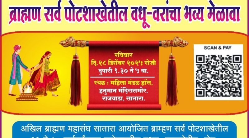 सातारा येथे २८ डिसेंबरला ब्राह्मण वधुवर मेळावा