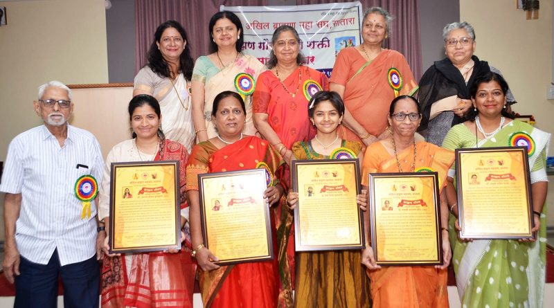 सत्कारमूर्ती धैर्या विनोद कुलकर्णी,एडवोकेट ज्योती दिवाकर, अनुश्री फडके डॉक्टर माधवी जोग आणि अनन्या कुलकर्णी यांच्यासमवेत अखिल ब्राह्मण महासंघाचे अध्यक्ष धनंजय कुलकर्णी डॉक्टर ज्योत्स्ना कोल्हटकर, वैशाली भट,सुवर्णा देशपांडे, सायली मुतालिक आणि शलाका शेवडे (छाया:कुलकर्णी फोटोज सातारा )
