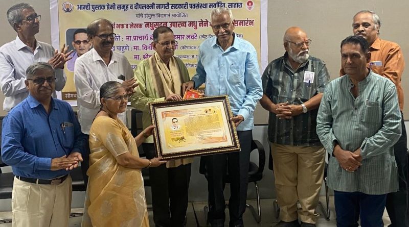 आम्ही पुस्तकप्रेमी समूह व दीपलक्ष्मी नागरी सहकारी पतसंस्था यांच्या संयुक्त विद्यमाने सातारकर नागरिकांतर्फे ज्येष्ठ लेखक व समर्थ भक्त मधु नेने यांचा गौरव करण्यात आला येथील दीपलक्ष्मी सांस्कृतिक हॉलमध्ये झालेल्या कार्यक्रमामध्ये ज्येष्ठ विचारवंत साहित्यिक प्राचार्य डॉक्टर सुनीलकुमार लवटे यांच्या हस्ते मधु नेने यांना मानपत्र प्रदान करण्यात आले